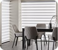 Duplex blinds are made up of two layers of fabric that move past each other. The design allows you to regulate light and privacy without any difficulties. The blind allows you to toggle between sheer and opaque areas without disturbing the blinds.